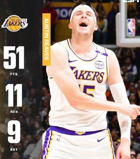 北京时间10月27日湖人客场对阵国王,全场比赛结束湖人以127-120成功击败了国王。尽管这场比赛湖人是缺少了詹姆斯和东契奇,但是在这场比赛中里夫斯打出了爆发表现狂轰51分11篮