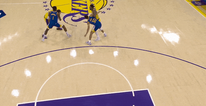 北京时间今日,在NBA揭幕战比赛日中,湖人队在主场迎战勇士队,半场战罢,勇士以55-54暂时领先于湖人。在湖人队的一次进攻中,东契奇呼叫斯马特前来掩护,跟防斯马特的库里一路贴防,随后